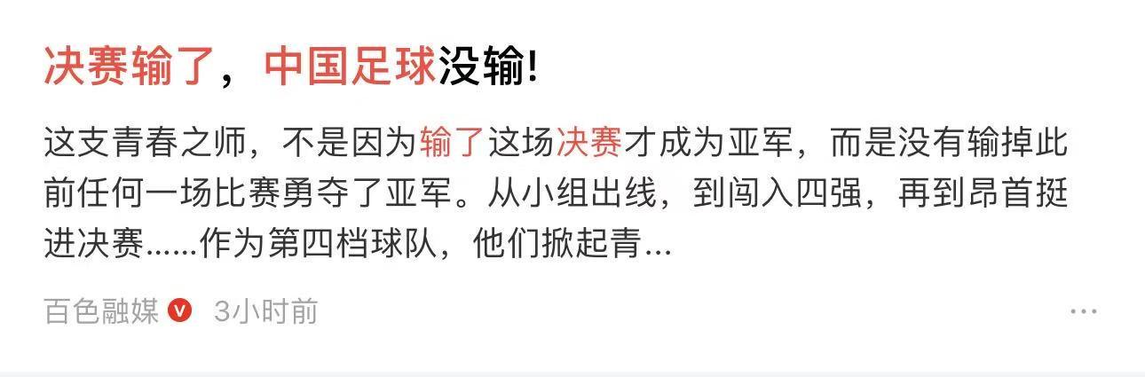 “决赛输了,中国足球没输!”惹争议