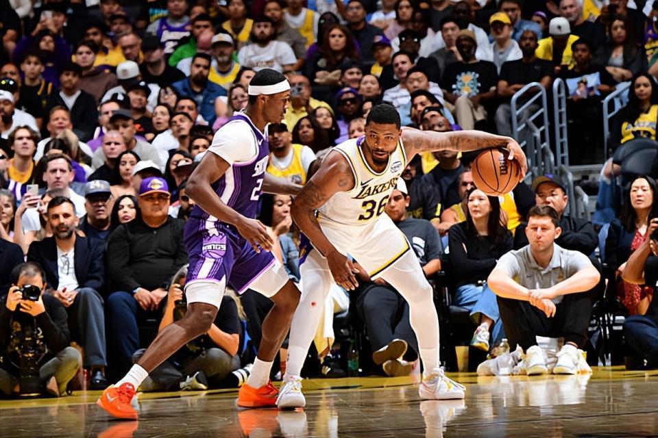 本场比赛中,湖人的先发后场大闸马库斯-斯马特(Marcus Smart)的表现还是颇有亮点的。斯马特全场出场24分52秒,投篮5中3,三分线外5中3,以超高的效率得到了9分3篮板3助攻5抢断的全面数据,还有1次失误和1次犯规,正负值也是达到了+17。斯马特在本场比赛中在进攻端找到了自己的手感,他也是命中了多记三分,得到了不少分分数,而且他也展现出了一定的传球能力和组织能力。考虑到他的球权并不多,他能够打出这样的表现已经是相当不错了。除此之外,斯马特在防守端的表现更是现象级的,他防守侵略性和积极性都是非常优秀的水平,他的绝对是一名非常优秀的防守者。至少在本场比赛中,斯马特打出了顶级3D后场球员的水准,为球队的大胜做出了不小的贡献。