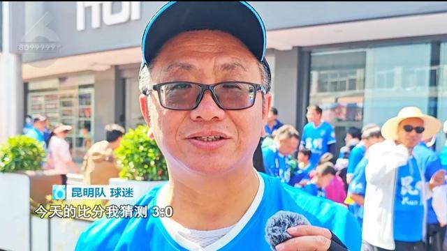 昆明队球迷:“我们提前就赶到现场,到场里进行热场,希望今天昆明队有出色的表现。今天的比分我猜测3:0。”